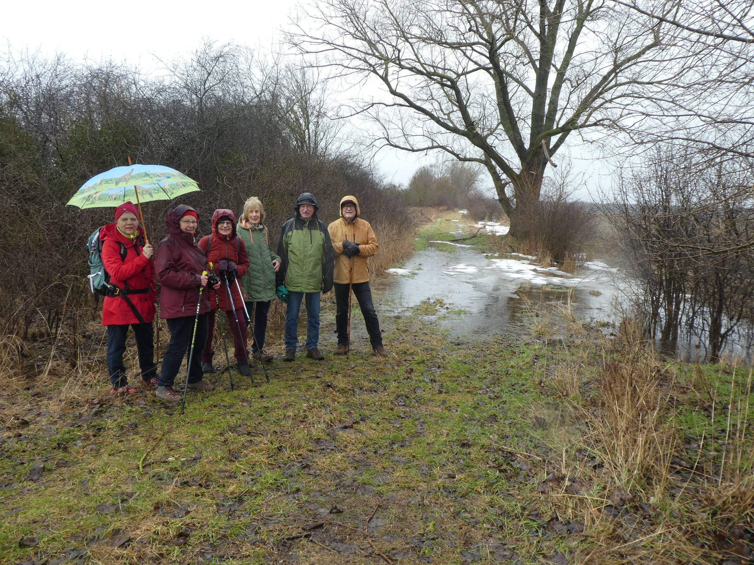 Die Vorzeichen waren von vornherein nicht günstig. Neun Wandervögel hatten sich trotz des Regens eingefunden, um nach Heinde zu fahren. Unterwegs entwickelte sich der leichte Regen zu einem Starkregen. Immer wieder wurde Ausschau gehalten, ob die Regenwolken nicht doch noch verschwinden. Im Regen startete die Wandergruppe. Noch in Heinde ereilte einem Mitglied ein Schwächeanfall und so kam es, dass ein Teil der Gruppe die Heimfahrt antreten musste. Die verbliebenen Vier ließen es sich nehmen zu wandern. Nachdem der Regen endlich aufhörte, ging es zügig an der Innerste entlang bis Listringen, zeitweise sogar bei Sonnenschein. Doch dort begann dann der zweite Regenschauer. Die Strecke auf dem eigentlich herrliche Kammweg war geprägt von Regen und Wind. Erst an der Lindenhütte hörte dann der Regen auf. Hier lohnte ein Rückblick über den Kamm nach Listringen und der Ausblick auf die einen Kilometer lange Lindenallee bis zum Friedhof Heinde. Am alten Gefängnis vorbei erreichten die Unverdrossenen wohlbehalten das Auto. Sie haben die Wanderung gut überstanden, aber waren “pitschenass”.